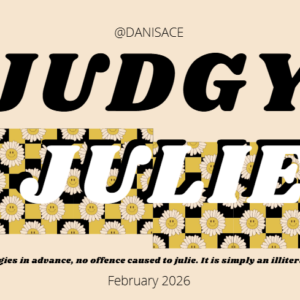 Apologies in advance to any Julie who may take offence. It is simply alliteration. And no offence is intended, nor is it directed at any sole person. The Julie’s I know have been amazing people and helped me in certain parts of my life. Specifically one, I grew up with her, she then welcomed me like family, gave me a job when I was 19 and was like a second mum.